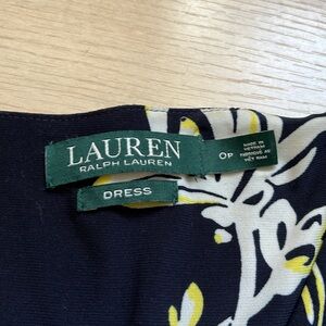 LAUREN Ralph Lauren Floral Print Fit & Flare Dress Navy Yellow Size 0 Petite