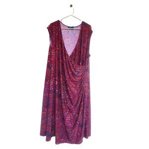 Lauren Ralph Lauren Floral Sleeveless Wrap Dresses Burgundy / red wine size in size 3x