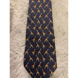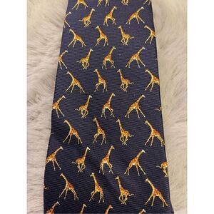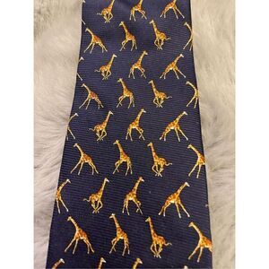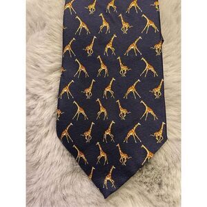 LAUREN Ralph Lauren Hand Finish Silk Tie Dark Blue with Giraffes