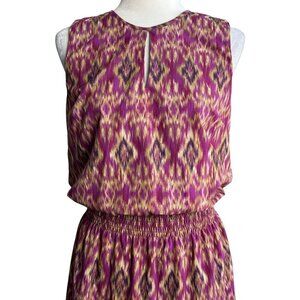 LAUREN Ralph Lauren Ikat Blouson Smocked Sleeveless Tiered Midi Dress Womens Sm