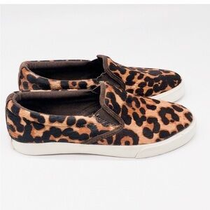 Pre- owned Ralph Lauren Calf Hair Leopard Print Slip-on Sneakers Size 9B. Sporty and exotically fabulous. 100% died calf hair, rubber sole, upper with elastic goring insets. Padded collar. Shoes were worn 1-2 times and are in excellent condition. No wear on soles