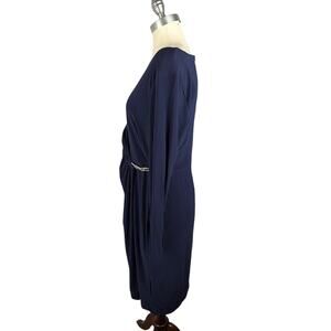 LAUREN Ralph Lauren Matte Jersey Surplice Dress Wrap Navy Size 12 Midi