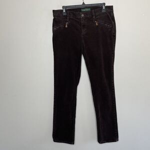 LAUREN Ralph Lauren Pants Womens 10 Brown Straight-Leg Corduroy Zip Pockets LRL
