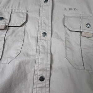 LAUREN Ralph Lauren Snap Button Down Khaki Shirt, Roll-Tab Sleeve, Safari, Sz M