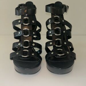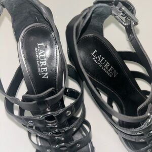 LAUREN Ralph Lauren “Stasia” black leather gladiator high heels size 10B