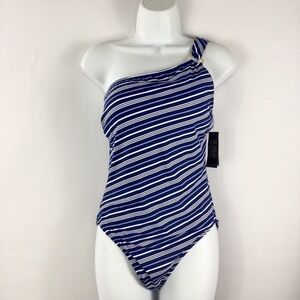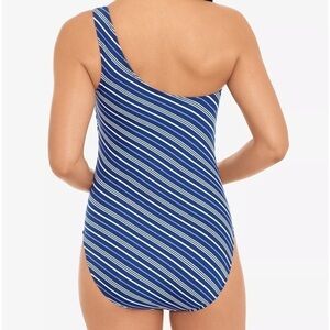 Lauren Ralph Lauren Striped One-Shoulder Tummy-Control One-Piece Swimsuit