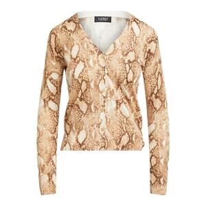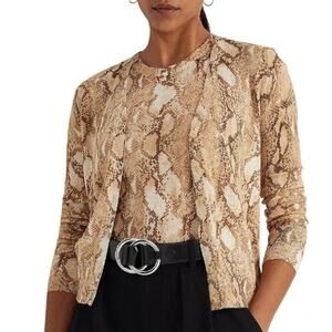 LAUREN Ralph Lauren Tan Snakeskin Print Cotton-Blend Cardigan Size Small New