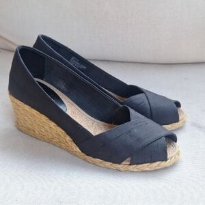 Step out in style with these chic black wedge espadrilles. Perfect for any occasion, these shoes offer comfort and elegance.