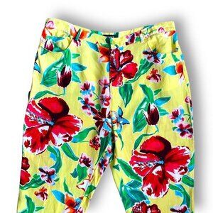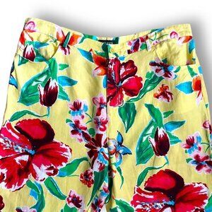 LAUREN by Ralph Lauren Yellow Tropical Floral Linen Ankle Pant