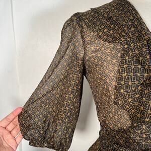 LAUREN Ralph Lauren Women's Ruffle Trim Top Blouse S Sheer Balloon Sleeve