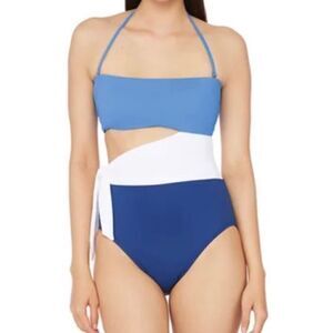 Brand new, with tags. Price is firm. MSRP $132. An edgy cutout contrasts on a color-block design on this one-piece swimsuit that features removable cups, a shaped fit, flattering control, and a flat front panel.