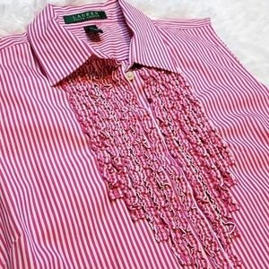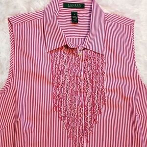 Pink and white striped tank top blouse by Lauren Ralph Lauren size medium button up front. Size 10