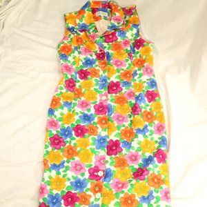 LAUREN TAYLOR New York Sleeveless Multicolor Floral Buttoned Dress Sz 12