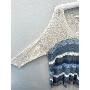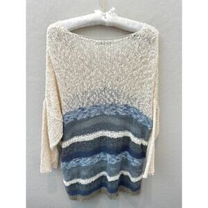 LAUREN VIDAL | Oversized Striped Lightweight Knit Sweater Cream & Blue | Large