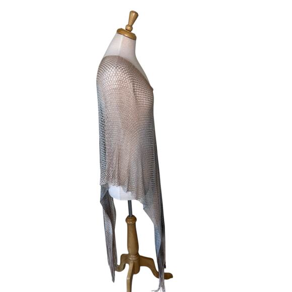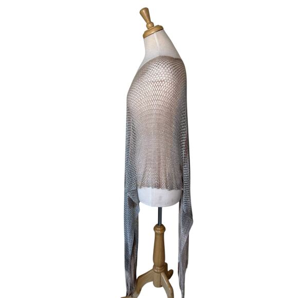 LAUREN VIDAL metallic knit shawl with fringed hem
