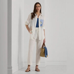 LAUREN by RALPH LAUREN NWOT Linen Ankle Pant in White