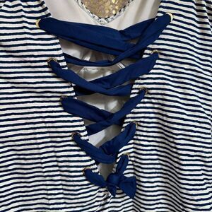 Great gently used condition, smoke and pet free home. No major flaws or signs of wear. Really cute, I LOVE the lace up back. Such a cute detail. Tie up shoulder straps. Has built in underwire cups, some light piling in the cups but nothing major. Feels nice, not cheap. Please see all photos. Women's size 16.