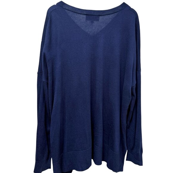 LAURIE FELT Star Sweater XL Navy Blue Rayon Cashmere Blend Womens Pullover VNeck