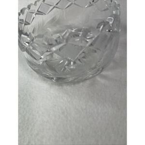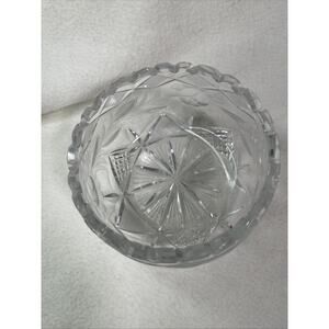 The product is a set of vintage, hand-cut 24% lead crystal compote bowls from Germany, featuring a clear color and a post-war design. Made by the Lausitzer brand, these bowls are crafted using a hand-blown glass production technique, showcasing the intricate cut glass design typical of German glassmaking. Each bowl measures 3 inches in height and 5 inches in width, making them a unique and elegant addition to any table setting.