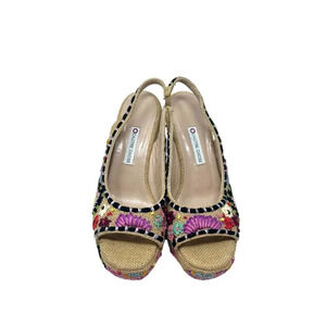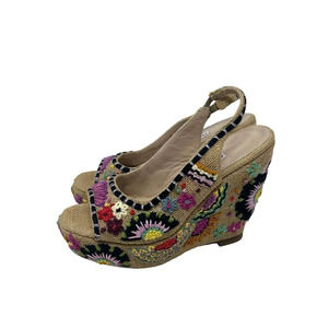 L'AUTRE CHOSE Floral Embroidered Wedge Sandals Size 37 / US 6.5