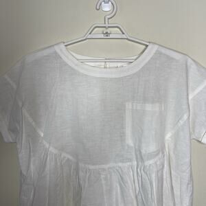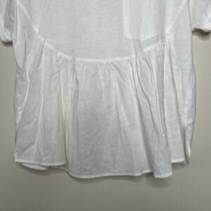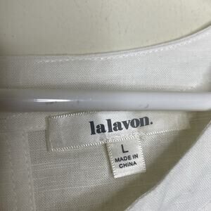 LAVALON White Peasant Blouse Linen Blend Oversized Boxy Boho Peplum Key Hole L