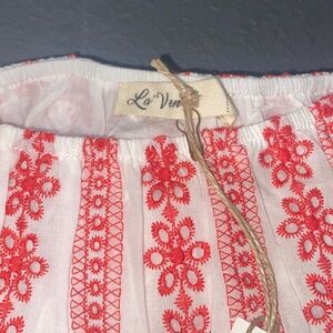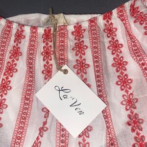 Chic and stylish, this floral red and white top is perfect for any occasion. The lightweight fabric and elegant design make it a must-have for your wardrobe. Elastic stretch across chest with bandeau lining.