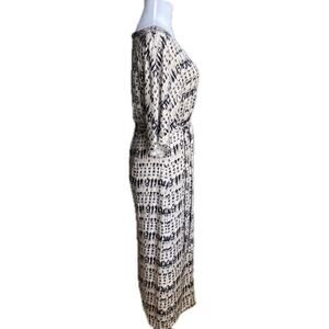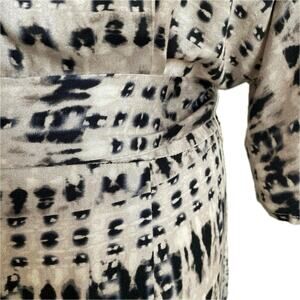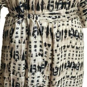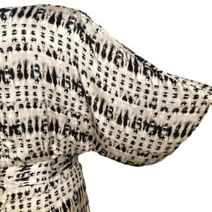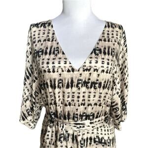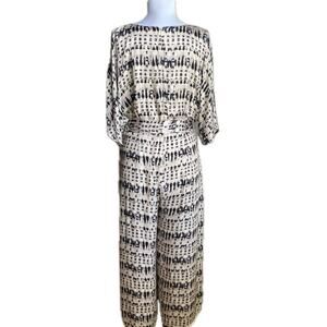 LAVENDER BROWN Ikat Batik Print Belted Wide Leg Flutter Sleeve Jumpsuit Size M Black