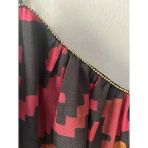 LAVENDER BROWN Orange Pink Burgundy Fall Houndstooth Maxi Dress Size S Small