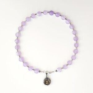 LAVENDER COLOR JADE NECKLACE W/ 925 SILVER BUDDHA