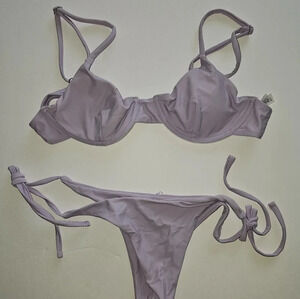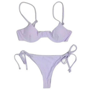 Zaful lavender bikini with thong bottom with string tie sides and matching top with underwire and padding