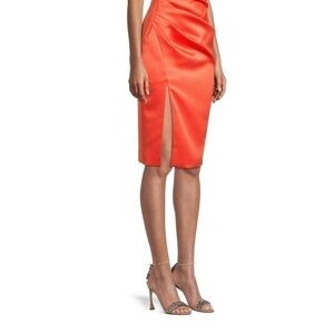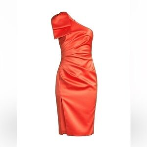 LAVISH Alice Bow-Shoulder Satin Midi-Dress In Coral Red