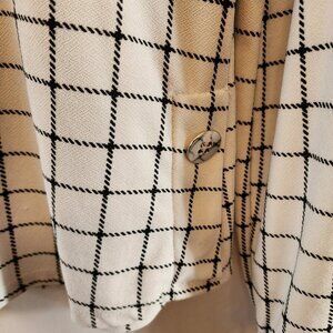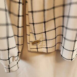 NAME: LAVISH LONG SLEEVE, LIGHT GREY/BLACK TOP, STRETCH, SIZE SMALL VERSATILE FOR OFFICE AND CASUAL WEAR, SILVER BUTTONS ON SIDES, CUFF SLEEVES EVERYDAY LIGHTWEIGHT