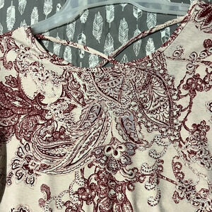Sz Small paisley print too pink base with red paisley design. Cut out back at the top with crisscross strap design.