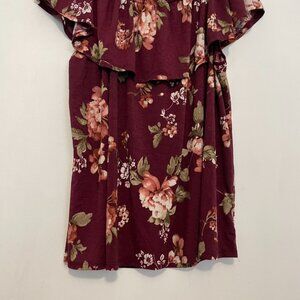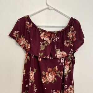 LAVISH Plus Size Burgundy Maroon Red Floral Off the Shoulder Boho Blouse JUNIORS