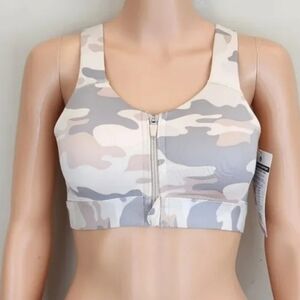 Stylish camo sports bra with a zip front. Perfect for workouts. LAYER 8 ZIP FRONT Sports bra SIZE: S MATERIAL : 90% POLYESTER 10% SPANDEX CONDITION: NEW WITH TAGS COLOR MAY VARY DUE TO LIGHTING MEASUREMENTS ARE APPROXIMATE