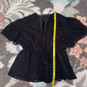 LAYNER Deep V Neck Ruffle Polka Dot Top Pom Pom Peplum Shirt Blouse size large