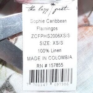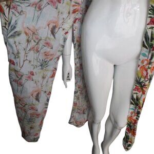 LAZY POET Linen Kimono/Swim Cover up, LONG slit, Flamingo/Multicolor Print