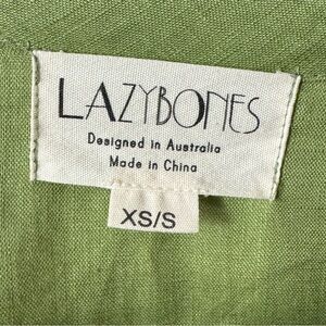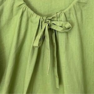 LAZYBONES 100% Linen Short Sleeve Green Midi Dress Drawstring Neck Size XS/S