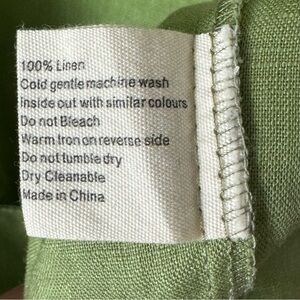 Size XS/S but runs pretty large for an XS/S. I’m a size 8/10 5’7” and I bought this size because it’s pretty loose fitting. So I would say it would fit small-large. See measurements below. The condition is pristine - like new. Wore once for a wedding-related event, it’s cleaned and ready to wear! 100% linen - unlined but not see thru (see last photo). I didn’t wear a slip. I would describe the color as “green grass”. Perfect summer dress! Lightweight - great for hot weather. Designed in Australia. 2 large pockets on front. Adjustable neckline with drawstring tie. Shown modeled on a size 0 mannequin. Approximate measurements (taken when laying flat - cannot guarantee fit):