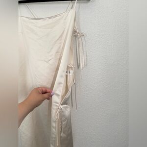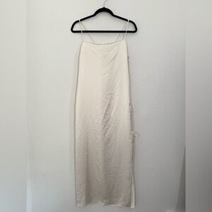 L’Acadamie Anor High Shine Side Tie Satin Slip Midi Dress in Creme Medium NWOT