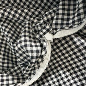 No stains. tear at the start of zip closure not a complete hole rip threading