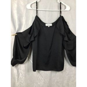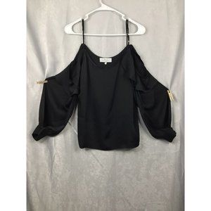 L`Academie Adjustable Spaghetti Strap Cold Shoulder Long Sleeve Blouse Black Size Large.