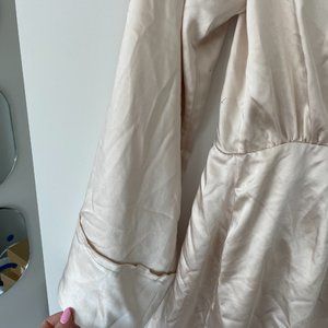 L'Academie Avena Wrap Satin Mini Dress Medium Ivory Long Sleeves Button Skirts