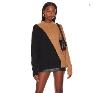 L’Academie Dagan Colorblock Crewneck Sweater in Black & Brown NWT - Size S
