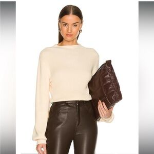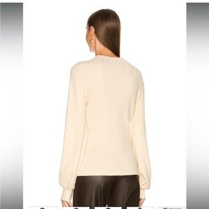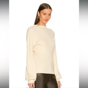 L’Academie Fable Sweater Mock Neck Ribbed Balloon Sleeve Cream Wool XXS Revolve