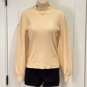 L’Academie Fable Sweater Mock Neck Ribbed Balloon Sleeve Cream Wool XXS Classic