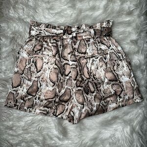 L'Academie Jane Satin Paperbag Satin w/ Belt in tan snake