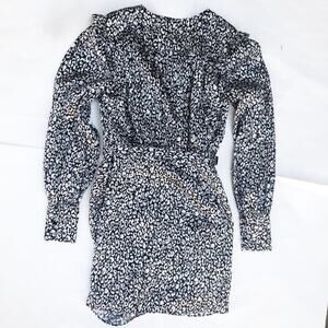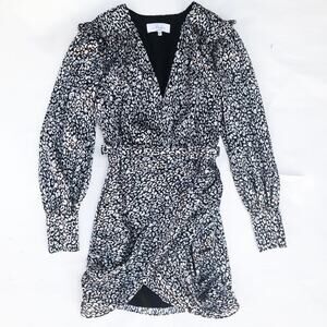 L'Academie Joyce Micro Mini Dress Abstract Cheetah Grey Belted Puff Sleeve xxs