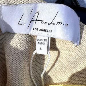 L'Academie LA Revolve Tan with Yellow Striping Cropped Sweater. Size Large. NWT