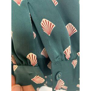 LAcademie Los Angeles Green & Red Fan Print Button-Up Shirt Dress XL RK10650